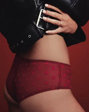 Soft Elegance Satin & Sheer Ensemble Lingerie Set ( Red )